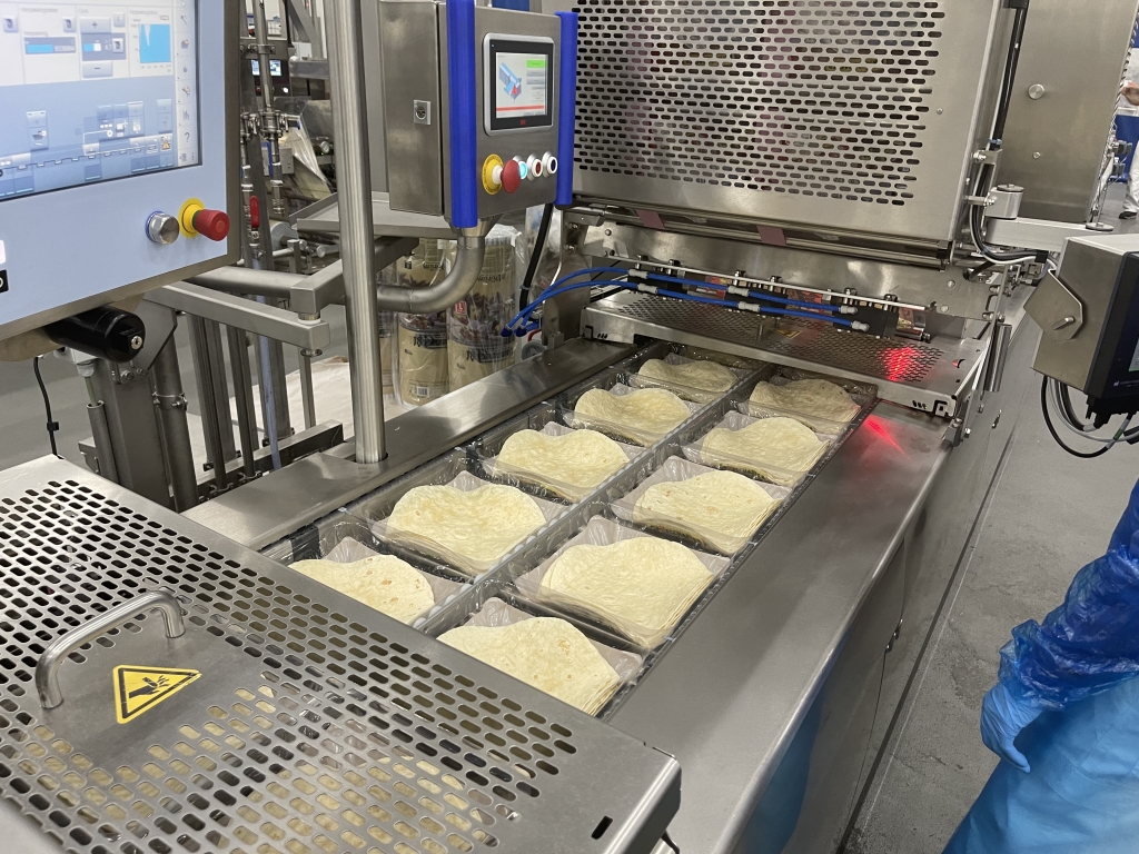 Tortilla wrappene lægges tæt på bakken. Vakuum fjerner 99% af luften i indpakningen, og en anden maskine erstatter den med CO2N2. Den beskyttende gasblanding sikrer, at tortilla wrappene bevares godt, så de ikke oxiderer og bliver gamle. Gastæt tætning opnås ved påføring af den anden rulle emballagefilm, som lukker pakningen. “Takket være vakuumforsyningen fra Busch kan vi forlænge holdbarheden af vores produkt betydeligt og sikre, at det forbliver lige så friskt som den dag, det blev pakket,” siger Rik Vandenbroucke, Technical Engineering Manager.