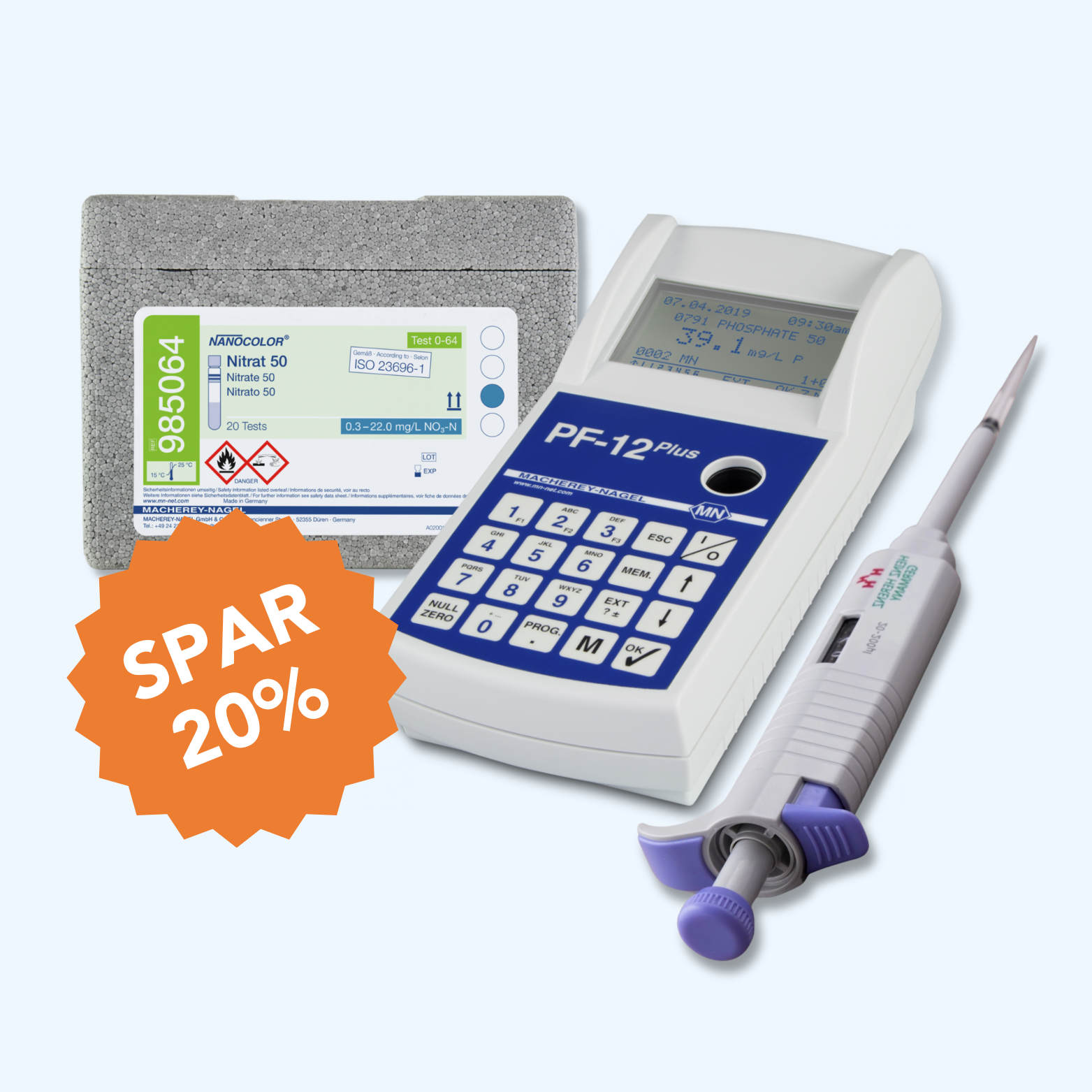 Med dette kit har du alt, hvad du behøver samlet ét sted. Kittet indeholder NANOCOLOR® Tube Test Nitrat 50, et PF-12 Plus kompakt fotometer til præcis måling samt en ergonomisk automatpipette, der sikrer nem og komfortabel håndtering. Der medfølger desuden både pipettespidser og målebæger, så du er klar til at analysere med det samme.