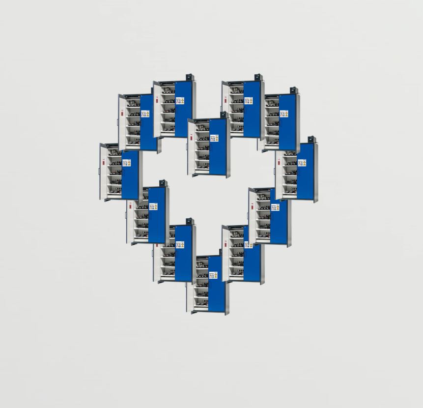 Så mens alle andre sender blomster, sender vi batteriskabe og opsamlingskar, så du altid kan gå sikkert på arbejde.